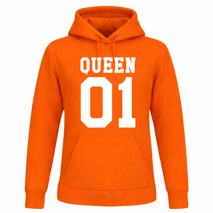 De QUEEN 01 ORANJE HOODIE is de perfecte keuze voor Koningsdag! Met zijn feloranje kleur en stijlvolle ontwerp straal je echt uit dat je een koning of koningin bent. Deze hoodie is comfortabel en van hoge kwaliteit, waardoor je er de hele dag lekker in kunt rondlopen. Of je nu deelneemt aan de festiviteiten of gewoon in oranje wilt opvallen, deze hoodie is een must-have voor iedereen die Koningsdag viert!
